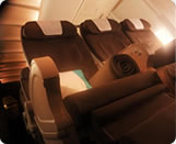 • Amenity kit: warm socks, eyeshades, toothbrush, toothpaste, sheet-backed blanket, large cotton pillow